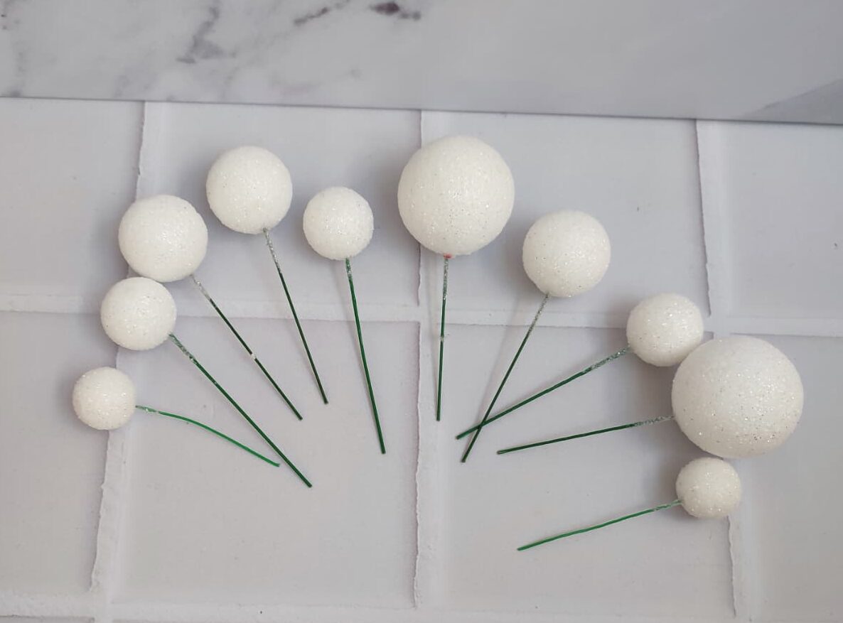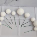 Las esferas de duroport (unicel o poliestireno expandido) son accesorios ligeros y versátiles utilizados en la decoración de pasteles y postres. Son ideales para crear efectos tridimensionales, dar altura a los diseños y agregar un toque elegante a las creaciones.