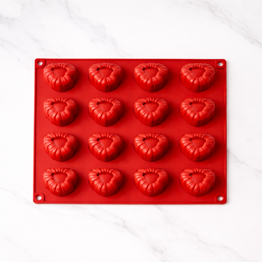 El molde de silicón es un utensilio flexible y antiadherente ideal para realizar figuras en pasta de goma. Perfecto para postres individuales con una presentación sofisticada.